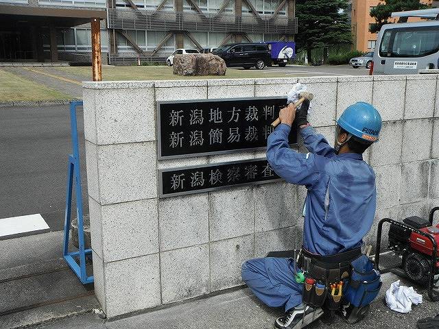 新潟地方裁判所の門柱へ銘板を施工させていただきました。